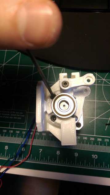 - While pressing the extruder body towards the bearing & shaft, removing any