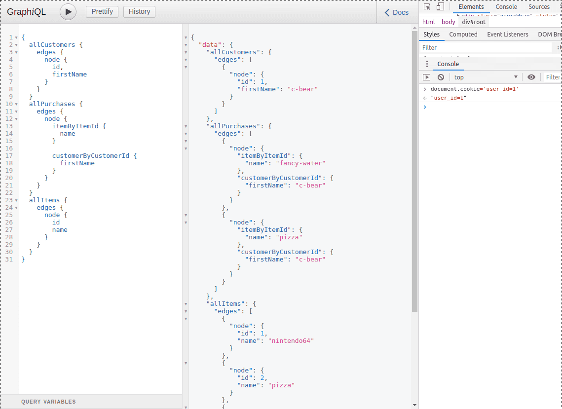 start();50 LOC, not so bad! when the server runs, it also exposes a graphiql instance, so we can play with our data!